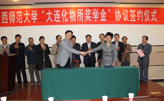 10月20日,中科院大连化学物理研究所赴陕西师范大学参加“大连化物所奖学金”签约仪式。陕师大党委副书记、副校长王涛,陕师大化学化工学院、材料科学与工程学院、物理学与信息技术学院的相关院领导,大连化物所李灿院士及管理部门相关人员出席签约仪式。