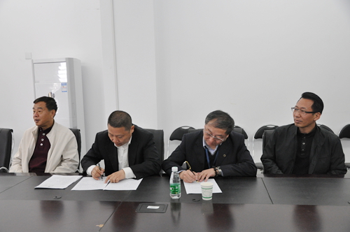 先进院副院长吕建成(右二)与南方科技大学副校长覃正(左二)签署交接确认协议书