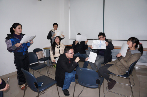 在“建设你的团队”环节中,四个小组通力配合,发挥想象力,结合每个组员的特点向大组奉献了精彩有趣的主题故事,其中“最浪漫的事”故事中《药物化学》书成为了男女主人公的定情之物,“庐山庙药物所”故事中朱全垒成为了一名著名的药物学家,充分显示出了药物所研究生高效的团队合作和积极的个人分享。