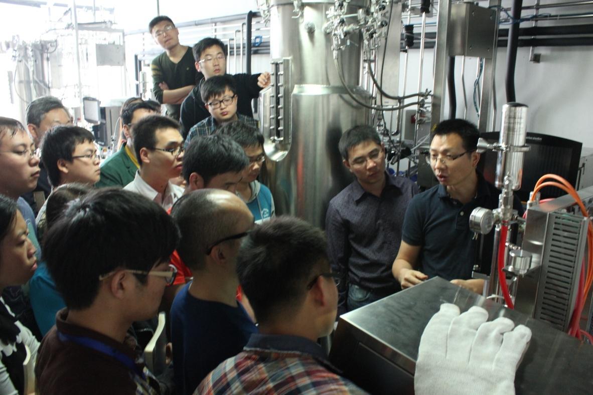张孝培工程师首先介绍了20L发酵罐的基本构造和配置情况,并就灭菌操作方法、电极的校正与保养、蠕动泵的校准、溶氧级联设置等工作进行了详解。随后,张工程师与参加培训的人员进行了互动讨论,使大家对发酵罐的灭菌过程及原理有了更深的理解和认识。此外,张工程师还对50L和200L发酵罐的操作进行了介绍,并详细地介绍了移种管道消毒、移种操作等步骤。