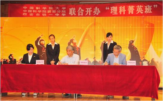 5月7日下午,中国科学院大学全国首家“理科菁英班”签约仪式在西安铁一中隆重举行。中国科学院大学校长丁仲礼、中科院西安分院院长赵卫、陕西省教育厅副巡视员马三焕与西安铁一中校长庆群分别致辞。
