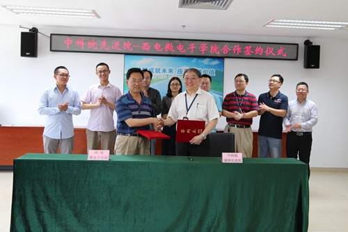 5月29日,中国科学院深圳先进技术研究院与西安电子科技大学微电子学院合作签约仪式在先进院A503会议室举行。先进院副院长吕建成与西电微电子学院党委书记赵树凯在共建协议上郑重签字,标志着双方在学科建设、人才培养、科研与学术交流等方面的合作正式启动。