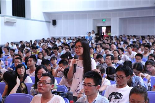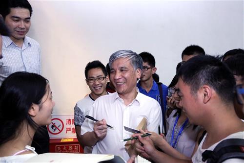 丁仲礼回顾了中国科技发展历史,告诉同学们要具有历史使命感。他指出,中国科技一直在进步,但一直以跟踪模仿为主,“跟踪模仿”某种程度已成为思维定式,亟需转型。一旦转型成功,中国世纪将真正来临。这是同学们需要担负起的历史使命。他相信,同学们这一代人将会促进中国科研从跟踪模仿到自主创新的历史转型。