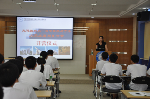 7月16日,夏令营在该所科研实验楼五楼报告厅正式开营。南京天光所所长、党委书记朱永田研究员出席了开幕式并向学生代表授夏令营营旗。朱永田向前来参加夏令营活动的同学们致以热烈欢迎,并希望大家能够充分利用这次难得的学习机会,了解学术前沿,拓展跨学科、跨领域的专业知识,培育科研综合素质,使这次夏令营成为人生中一次特殊的学习经历。人事教育处处长齐金英主持了开幕式,并就研究所概况和研究生培养情况进行了详细介绍。