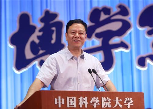 面对充满喜悦的新同学,丁仲礼分享了自己的感受。他相信,一所大学是否卓越,关键在于校风。优良的校风可以在其每个毕业生身上打下鲜明的烙印,成为这所大学的典型标志,可以代代相传,历久弥新,还可以深刻地影响社会,开一代新风。他希望,国科大校园能始终弥漫着浓浓的读书气息,充满家庭般的温暖。通过国科大校风的熏陶,每一个毕业生,都有贡献人类的理想,都有穿透历史的眼光,都有悲天悯人的情怀,都有独立包容的气质,都有正直善良的品性,都有不畏挑战的勇气,都有不断创造的学识,都能在历史、人生的任何紧要关头,做出正确的选择。最后,他把一首自己所作的词《贺新郎》送给新同学,“愿尔曹,万里长纵目。朝海日,任飞举”。