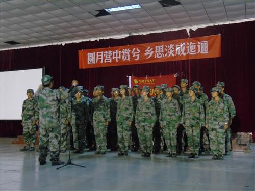 中秋佳节,共话婵娟。不知不觉中,紧张的军事训练已悄然过半,为了丰富同学们的文化生活,疏解同学们的思乡之情,同学们自主举办了以“圆月营中赏兮,相思化成迤逦”为主题的本科生军训联欢晚会。