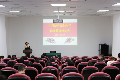 10月29日下午,中国科学院苏州纳米技术与纳米仿生研究所在D111举办了档案管理业务培训会。所党委书记、副所长刘佩华主持会议并讲话。综合办公室主任张明杰,科技处处长景震强出席会议。各职能部门兼职档案员,各科研部门及平台秘书,各课题组兼职档案员参加培训会。