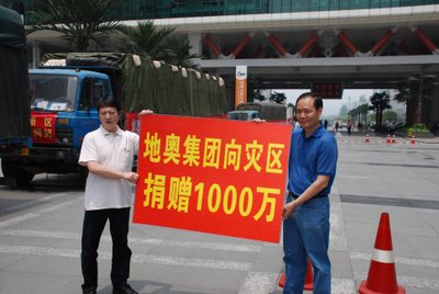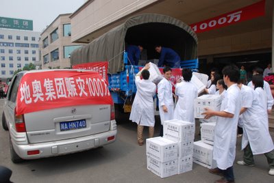 5.12汶川强烈地震给人民带来了罕见的巨大灾害。在灾害中深受其害、生产也受到一定影响的成都地奥集团,仍心系重灾区,情系灾区人民,向灾区人民献出一颗颗赤诚爱心。5月16日他们向灾区捐献了价值800万元急需药品,现金200万元,合计1000万元。还捐献了一批医疗器皿。