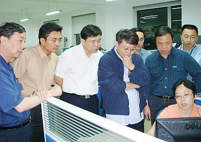 江绵恒(左四)、阴和俊(左三)视察对地观测中心 6月4日晚,中科院副院长江绵恒、阴和俊来到对地观测中心视察遥感抗震救灾工作,先后察看了数据获取组、光学遥感组、雷达遥感组、数据与信息服务组、综合分析组等工作,并亲切慰问了工作在遥感抗灾第一线的科技人员。