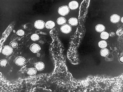 通过电子显微镜看到的汉坦病毒细胞膜内粒子 图片来源:Scott Camazine
