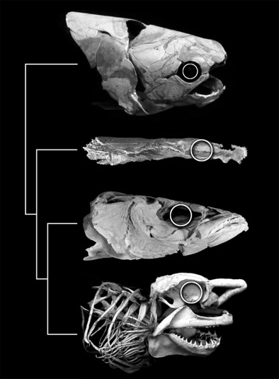 为了搞清这种鱼能够在哪里融入早期颌类脊椎动物的进化,研究人员使用了一种微CT扫描技术——类似于病人在医院中为了看清身体内部情况而采用的常规CT成像技术,从而在不破坏化石的前提下观察其1厘米长的头骨中的骨骼结构。