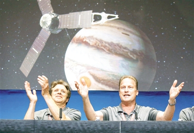 美国东部时间7月4日23时53分(北京时间5日11时53分),“朱诺”号探测器主引擎在启动35分钟后按计划准时关闭,这意味着“朱诺”号顺利进入木星轨道。美国国家航空航天局(NASA)随后确认,“朱诺”号已成功入轨。