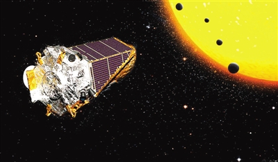 开普勒太空望远镜及其新发现的四行星系统(示意图)