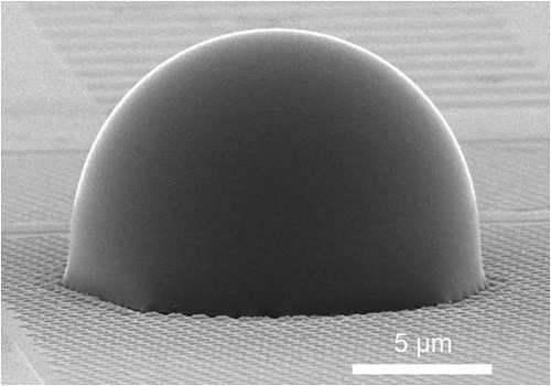 由15纳米二氧化钛所组装成的超半球mSIL 的SEM 图像。图片来源:复旦大学