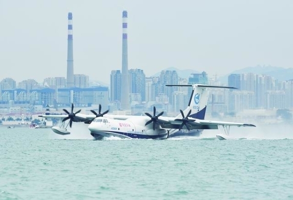 “鲲龙”AG600成功实现海上首飞。新华社记者李紫恒摄