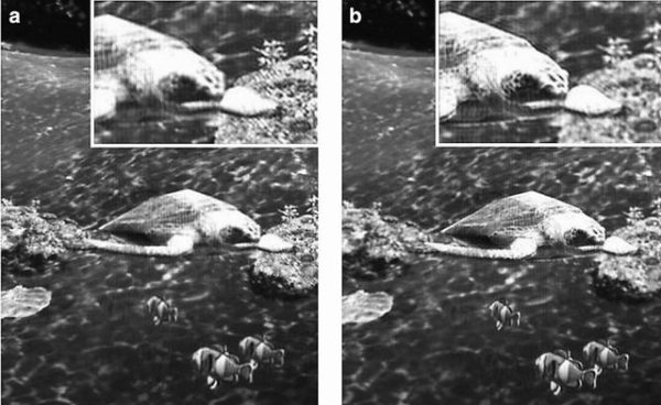 为了解决上述问题,研究人员提出了一种采用转向背光单元和全息视频处理器的交互式薄面板全息视频显示器。韩国三星综合技术院的Hong-Seok Lee和同事开发的这款超薄显示屏,将3D视频的观看角度增加了30倍。研究人员在现有紧凑全息技术上添加了特殊的背景光和光摆动机制,让这一切能以一种很薄的形式(不到1厘米厚)呈现。结合一个单芯片定制处理器,他们成功投射了一个可多角度观看的全屏超高清交互式3D海龟游泳视频。