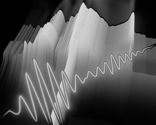在产生脉冲的电场背景下,中红外脉冲频谱的艺术图像。图片来源:ICFO