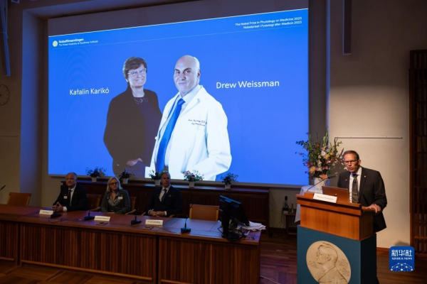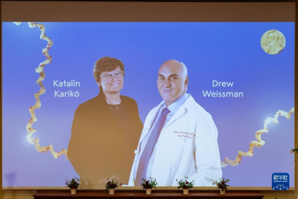 瑞典卡罗琳医学院2日宣布,将2023年诺贝尔生理学或医学奖授予科学家卡塔琳·考里科和德鲁·韦斯曼,以表彰他们在信使核糖核酸(mRNA)研究上的突破性发现,这些发现助力疫苗开发达到前所未有的速度。