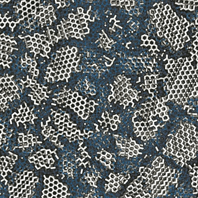 低密度无定形冰结构中有许多微小晶粒(白)隐藏在非晶材料(蓝)内(艺术概念图)。图片来源:英国剑桥大学