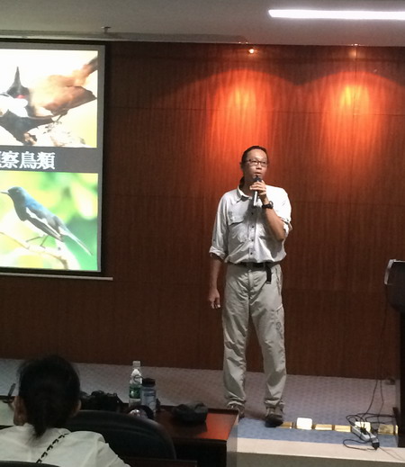 随后,苏毅雄先生作了题为《观鸟、观星、观自然》的科普讲座,他用自身的经历和感受和同学们分享了大自然中鸟类、昆虫、大型动物、星座等各种有趣故事以及由观自然引发的人生感悟,并指导同学们正确使用器材进行自然观察。他还解答了同学们关于如何投身自然公益组织、如何进行生态摄影及如何平衡日常工作与公益环保事业等方面的疑问。