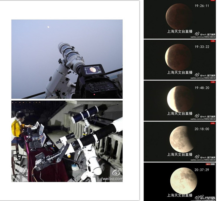 此次直播为了加强与观众们的互动,也首次在直播过程中,公开征集观众们观测月食现场的微视频,并精选部分插入直播视频。活动现场设置了大屏幕,使现场的观众也可以收看到佘山天文台发送过来的直播视频,同时也可以看到自己发送的活动现场视频。不少观众拍摄屏幕上的红月亮,并与直播画面留影。包括泰晤士小镇在内的上海各观测点以及不少大众通过微信、微博的方式向天之文中国天文科普网官方微信发送视频。