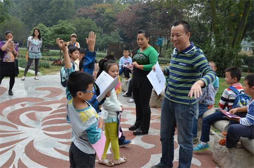 户外探究环节,李老师带领孩子们观察寻找了樟树、凌霄、麦冬、薏仁、三角枫、蒲公英、莲蓬等植物的果实及种子,分析了这些植物种子旅行的传播方式及各自的特点。最后,亲子家庭的父母和孩子们分别扮演植物的种子,通过讲述四种传播方式,展现了植物种子旅行的过程。扮演及讲述让孩子们复习了所学的知识,课堂效果非常好,受到孩子们的喜爱及家长们的肯定。
