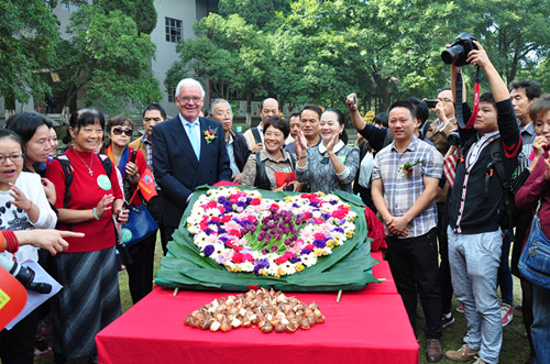 活动现场,荷兰“国泰郁金香”协会秘书长博特•范德阿特、武汉植物园园方和武汉市民代表一起将99颗“国泰”郁金香种球种植在花盆中,期待明年美丽绽放。为了促进郁金香在武汉地区的推广。当天,武汉植物园还准备了1200颗郁金香种球免费赠予市民。