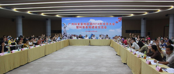 10月29日,广州科普基地联盟2014年成员大会暨科普基地建设交流会在广州召开。广州市科技与信息化局党委副书记、联盟理事长马曙;中国科学院华南植物园园艺中心执行主任、联盟副理事长蒋厚泉;联盟秘书长朱才毅等出席会议。来自78家成员单位的领导及代表150余人参加会议。