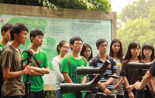 华南植物园飞羽志愿者团队是一支由广州地区部分高校大学生组成的志愿者服务团队,除在承担华南植物园面向公众的观鸟自然体验普及活动外,还担负指导社区、少年宫、中小学等自然观察科普工作,通过开展鸟类与植物等自然导赏科普活动,带领公众领略、体验自然之美。飞羽志愿者先后在中海康城社区、珠江俊园社区、流花湖公园、白云山鸣春谷等近十个社区、社区公园、社区小学开展多场次的观鸟自然导赏服务,期间向社区居民、学生无偿派发《观鸟科普学习手册》,赠送鸟声光盘、鸟类扑克牌、鸟类明信片等科普资料。