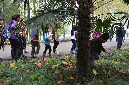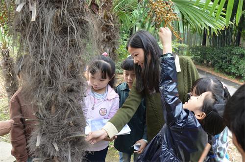 活动将小朋友分为三组,由植物园三名科普工作人员带领,开始在武汉植物园园区进行大棕榈和小棕榈的分布调查,三个小组分别沿着不同的路线对大棕榈和小棕榈的分布情况如实调查,并在地图上详细记录。经过一个半小时的调查,小朋友把调查结果带回了教室,用不同的颜色,将大小棕榈分别在大地图上标示出来。根据地图显示结果,结合棕榈的果实、生长位置和环境等信息,引导小朋友对棕榈种子的传播方式做出推测。