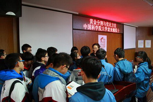 袁亚湘先后前往湘潭县一中、明德中学、麓山国际实验学校、南雅中学、同升湖国际实验学校这5所中学,作了题为“黄金分割与优化方法”的精彩学术报告。他从中国国旗、共青团员团徽中的五角星引出最美的黄金分割比例,结合雅典神庙的设计到画家达芬奇构画奥秘进一步介绍黄金分割法的历史起源,并从我国古代的田忌赛马说到Netflix如何向用户精准推荐电影介绍优化方法在生活中各方面的实际应用。他的报告视角新颖,旁征博引,实例鲜活,语言深入浅出,诙谐幽默,让同学们悟出了数学就在随处可见的生活中。