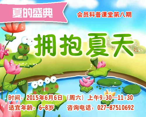 6月6日(周六)上午,武汉植物园将开展会员科普课堂“夏的盛典”系列的第一课“拥抱夏天”。 春去夏来,植物发生着哪些变化呢?武汉植物园邀请亲子家庭的孩子们,在园内探寻植物夏季的生活方式,动手记录,了解植物是如何拥抱夏天的,体验夏的气息,感受大自然的热情!如果您家的小朋友对活动感兴趣,请拨打科普课堂报名电话,到科普课堂来吧!