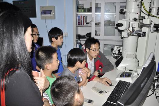 同学和家长们在听取了科普报告后分别参观了生物材料与组织工程研究中心和无机材料分析测试中心。在实验室,同学们对从未接触过的各类仪器设备产生了浓厚的兴趣,特别是当看到了3D打印机、扫描电子显微镜、透射电子显微镜、辉光放电质谱仪等设备时更是兴奋不已,并观察了用生物材料通过3D打印机打印出的人工鼻子以及利用透射电镜观察细胞形态。