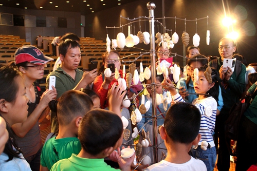 在科普报告中,郑守仪用通俗易懂的语言向大家介绍了有孔虫的定义、命名、分类等科普常识及她在这方面的研究历程,用形象的图片、精致的模型实物让大家充分领略了有孔虫的科学价值和美学价值。“科学需求要与艺术需求相结合”、“自己动手有好处,就是踏实”、“有困难战胜困难的成就感会很大”等一句句朴素而经典的话语,郑守仪在向大家传播科普知识的同时,也传递给大家一位科学家对待工作孜孜不倦、一丝不苟、认真乐观的态度。1个半小时的讲座中,大家听得非常认真入迷,在互动环节青少年成了提问的主力,“郑奶奶,有孔虫能活多少年?”、“有孔虫我们平时在海边能见到吗?”,五花八门的问题展现了青少年们对有孔虫世界的好奇与向往,郑守仪高兴孩子们能够提出这么多问题,她耐心一一回答后,邀请孩子们上台近距离观摩有孔虫展品,通过微型显微镜观察有孔虫标本,讲解了她精心制作的带有120个有孔虫模型的展架。