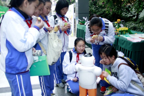 在开幕式现场,与会代表参观了成都分院组织的科技实物展。中科院成都光电技术研究所的激光键盘、成都生物研究所的两栖爬行动物标本、成都信息技术公司的基层会议选举系统以及深圳先进技术研究院未来天使机器人和教育机器人等科普产品,深受广大师生的喜爱。武侯电视台还对教育机器人、激光键盘和两栖爬行动物标本等参展项目进行了现场专访。