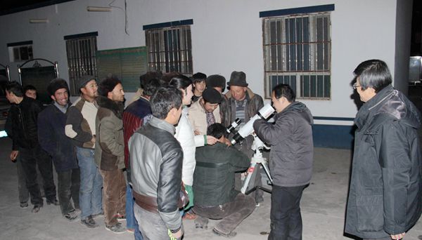 中国科学院新疆天文台学术委员会副主任、光学天文与技术应用研究室副主任艾力·伊沙木丁博士以及新疆第一位天文学女博士帕力旦木·阿西木发挥自身的语言优势,为托克扎克镇6个村以及站敏乡19个村的村民2000余人带来了《探索美丽星空的奥秘》、《人类为什么要探索宇宙》的宣讲。从挤得水泄不通的会议室到每个人脸上专注的表情,从冒着严寒,排着队争相看星空的村民到站敏村的宣传变成了站敏乡19个村的宣讲,我们看到了现代科学知识的吸引力,也看到现代文化的引领作用。