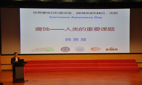 活动以“走进腐蚀世界,营造健康生活”为主题,通过举办科普报告、“走进腐蚀世界”科普展览、“趣味腐蚀现象”系列科普实验、科学体验营、科普知识问答等活动,向社会各界展示腐蚀给我们的生活带来的危害与便利,并学习如何控制腐蚀,提高腐蚀防护意识。活动中,世界腐蚀组织主席、中国科学院沈阳分院院长韩恩厚研究员为来自沈阳市第二中学、沈阳市第五中学、辽宁省实验中学、东北育才学校、沈阳120中学、北京师范大学沈阳附属学校师生及社会公众400多人作了题目为“腐蚀--人类的重要课题”的精彩报告。报告生动地介绍了腐蚀问题与国民经济建设和国防建设息息相关,我国每年由于腐蚀造成的经济损失约占国民生产总值(GDP)的5%,腐蚀不仅仅给国民经济造成巨大损失,还会对人们的安全、健康和生活质量造成重大影响。同时腐蚀也是可以利用的,如电路板刻蚀中的应用。报告中,韩恩厚研究员还向前来的市民介绍了一些像“含盐、酸成分饭菜不宜用不锈钢长期盛放”、“金属器皿不能煎熬中药”、“隔夜再开水龙头流一会儿再食用”、“热水器里的镁棒需定时更换”等生活中应用到的腐蚀防控的相关知识和小窍门。