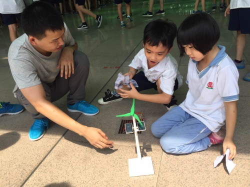 活动参与者为北区小学全体学生,活动内容主要包括气候拼图、节能与新能源、垃圾巧分类等8个主题。广州能源所志愿者宋鑫焱、李猛在活动中讲解了太阳能风车发电模型、温差发电装置以及水果电池等原理,并为参观的学生进行了各项原创新能源小试验的演示。