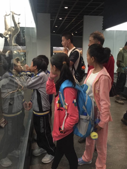 孩子们驻足观看动物标本