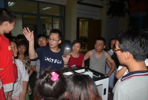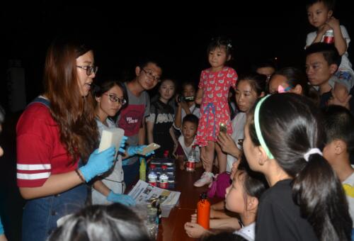 活动现场,科研人员带来了高分子材料产品、海上除油污海绵、趣味催化实验、3D打印机、全向移动机器人等互动性、趣味性和科普性都很强的项目,向社区居民展示“看得见的科学”。科研人员在进行演示后,让现场居民亲自动手操作,亲身体验科技成果。海上除油污材料的演示,获得了现场居民们的阵阵惊叹,纷纷表示没想到“还有如此神奇的材料”;高分子材料成果展示区围绕“科技改变生活”这一主题,带来了超轻减震轻便跑鞋、大豆胶黏剂做成的地板、生物可降解餐盒餐具等,在介绍之后,居民纷纷询问在哪里可以购买到这些产品,想要享受到高科技产品带来的“福利”;趣味催化实验则受到了学生们的关注,各种化学现象让他们瞪大了眼睛,争抢着回答演示人员提出的问题;全向移动机器人深受小孩子们的喜爱,拿着遥控器坐在上面,就像是在开汽车,甚至在活动结束之后,孩子们还不舍得下来;现场最受欢迎的还要数3D打印演示,大人孩子不顾炎热,紧紧围绕在打印机周围,不断向科研人员发问,在活动结束之前的提问环节上,回答问题最好的孩子,获得了当晚打印出来的纪念品。