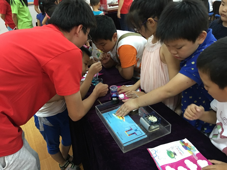 在科普互动环节中,上海硅酸盐所科普志愿者们带来了染料敏化太阳能电池装饰灯、充电宝,热电转换驱动小风扇等科普互动体验装置和光催化降解有机物科学演示小实验。通过零距离体验科普装置,现场参与科学小实验,小朋友们感受到了科学的魅力与神奇,体会到了科技对于生活方式的深刻改变。