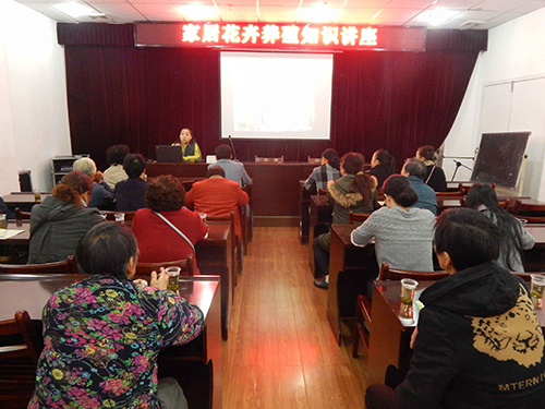 洪山区社区科普大学是拥有一支20人以上的骨干教师队伍,全年课程达到300场次以上,以高质量高标准完成教学任务为目标,努力打造洪山区科协科普新品牌。为此,华中科技大学科协副主席、洪山社区科普大学副校长鲁亚丽为本次活动牵线搭桥,落实课堂细节,对课堂效果寄予厚望。武汉植物园借助洪山区社区科普大学搭建的社区学习平台,在本项系列活动中起到了技术引领的作用,为本次活动精心准备了科普展板及家庭养花手册、教学用书。讲座激发了居民种养花卉的兴趣,提高了居民花卉养护技巧,普及了花卉扩繁技术,让植物科普知识及栽培技术惠及更多的居民,共同建设绿色生态家园。