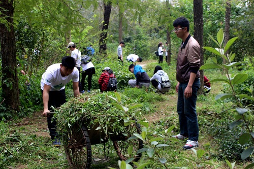 志愿者清理药园杂草