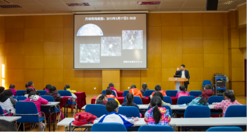 依托于广州地化所雄厚科研实力的广东省唯一的一家以普及地球科学和资源环境保护为主的科普基地,如今已成为一处青少年行走广州不可错过的科教融合游览胜地。走进科普基地标本陈列馆,900余种珠宝玉石、矿物、岩石、矿石、古生物化石标本,如此丰富的藏品让同学们大开眼界。科普志愿者详细介绍了地球上可开发的有用资源,以及各种矿产资源在我国国防、工业、农业、化工、建筑材料等行业发挥的作用。通过对各种岩石、矿物、古生物化石标本的认识、矿产资源分布以及形成与演化的科普讲解,孩子们受益匪浅。为了让同学们进一步加深对地球科学的认识,广州地化所研究员陈鸣作了题为“地球上的陨石坑”的科普报告。报告采用讲故事、图片展示、精彩例案和提问互动等多种教学方式,用浅显易懂的语言介绍了星球撞击遗迹的基本概念,重点讲述了星球撞击发生在地球上的故事。