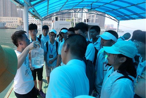 海上科学考察实践活动分四个板块,分别是乘坐“创新”号科考船进行海上调查作业,在码头停靠的“海鸥”号科考船上开展浮游植物与富营养化、浮游动物与海洋生态系统食物链、食物网以及海洋污损生物知识讲解。