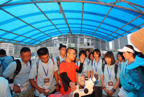 在海洋污损生物实验板块,科研人员介绍了污损生物的定义及污损生物群落的形成、危害及防除方法,并通过肉眼及显微镜观察胶州湾主要污损生物类群等。