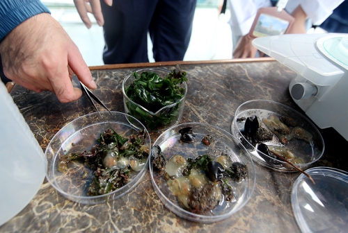 科研人员现场展示实验培养的海洋污损生物
