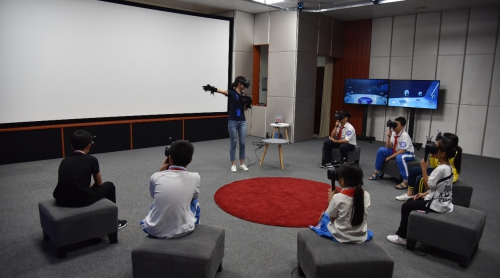 同学们体验深海VR视频