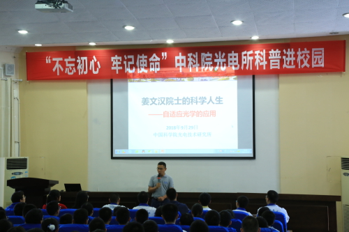 陈勇在阆中市老观中学和阆中中学作了三场题为《姜文汉院士的科学人生》的科普讲座,以姜文汉三次为国家需要而转行的传奇经历为主线,介绍了姜文汉在国内开创自适应光学的成长历程、获得的成就,以及当前最新的科学研究进展。从嫦娥三号到交会对接,从太阳CT到视网膜预测病变,从光刻机到量子通信,陈勇为同学们带来了一场科学的饕餮盛宴,带领同学们走进科学家,了解科学家,理解科学原理,关注科学动态,从而相信科学,理解科学,追逐科学。