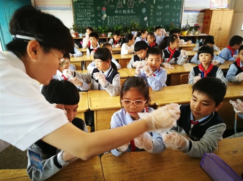 中科院上海天文台科学传播室主管、天文科普人汤海明为六年级280多名小朋友作了题为《月球和月球探测》的科普主题报告,介绍了月球的基本知识和探测方法,同学们听得津津有味,气氛热烈,互动不断。科普志愿者走进三、四、五年级的14个班级,与同学们交流互动,同学们在《动感化学》、《紫色魔法》和《“魔水”酸碱试剂检测》中感受到化学的多彩,在《专属声纹》和《超声清洗》中体验声音的奇妙,在《智能压电材料》和《面包板电学实验讲解》中知道电的实用,在《视觉暂留》、《红外感应+辉光球》和《五光十色》中欣赏光的美妙,在《树叶作画》、《干花书签》中感悟植物的魅力,在《嗨!添加剂》、《先进材料在口腔正畸中的应用及口腔健康知识》中了解生活小知识,讲授和实验结合的方式激发了小朋友们的热情,大家争先恐后地参与互动。此外,中科院上海生命科学研究院博士生张大川为同学们科普食品添加剂知识,植物生理生态研究所的志愿者任航、王玉茹为活动准备不同植物的叶片和干花,以达到最佳的科普效果。